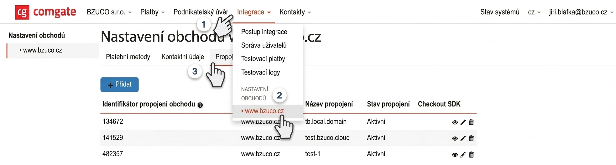 Jakmile je tato integrace vytvořená, postup je stejný jako u výše popsané integrace do BZUCO e-shopu.